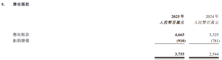 财务报表附注中,公司的应收账款权贵高涨至37.55亿元,主若是由于销售增长所致。