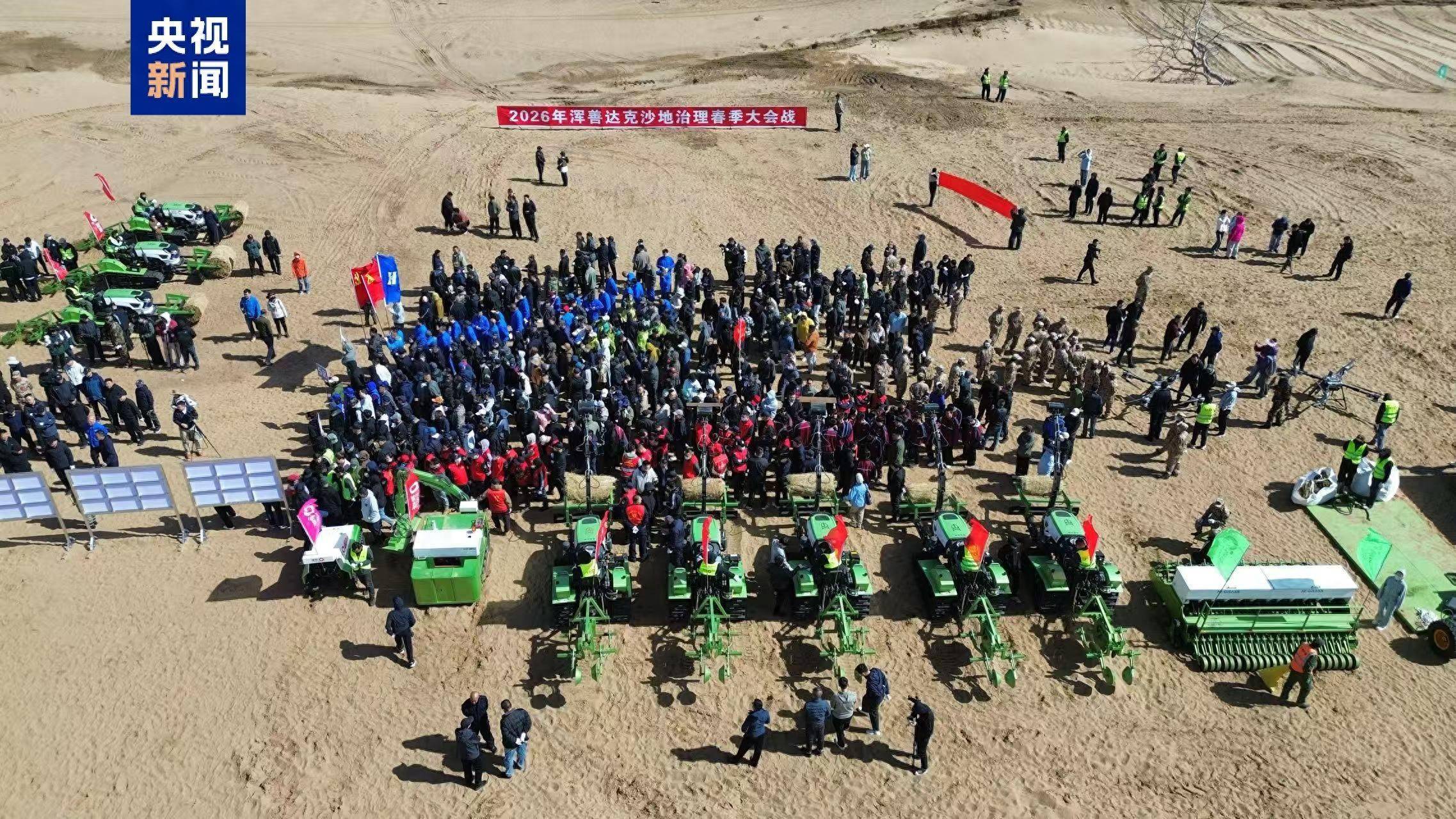4月15日,2026年“三北”工程浑善达克沙地春季大会战在内蒙古锡林郭勒盟正蓝旗出手。在防沙治沙现场,辘集展示了沙障播撒一体机、多钻头灌木打孔机、穴式补播机、无东谈主种绳铺设机、小履带沙障机等一批先进智能装备,机械化、智能化治沙成为最大亮点。