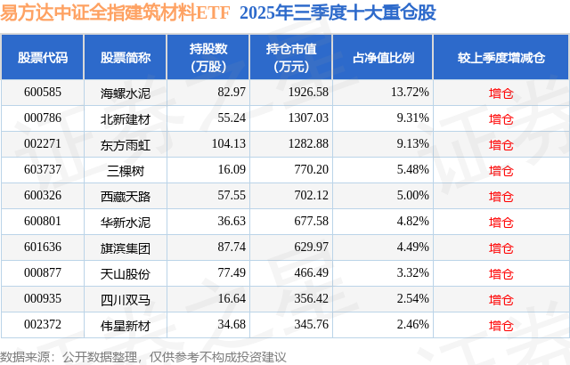 本站讯息,日前易方达中证全指建筑材料ETF基金公布三季报开云体育,2025年三季度最新畛域1.4亿元,季度净值涨幅为13.39%。